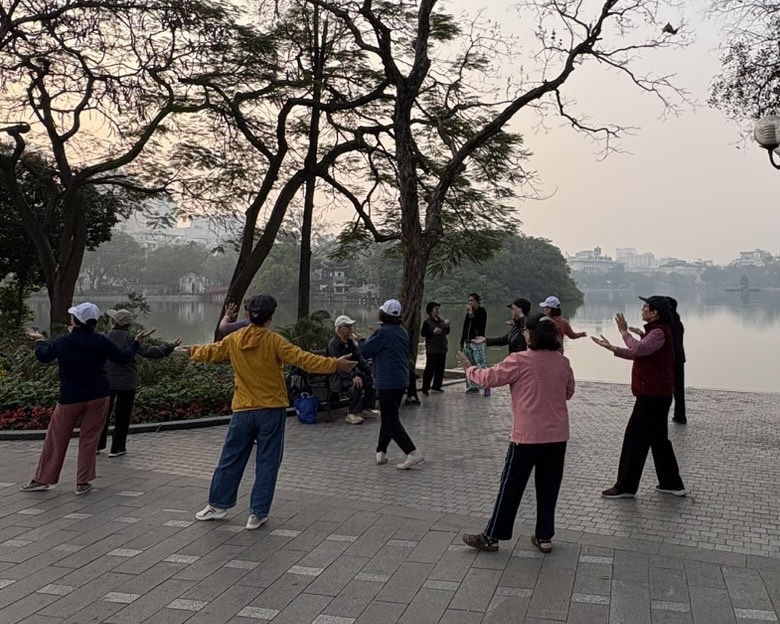 また、街の中心には Hoàn Kiếm Lake ホアンキエム湖 があり、早朝には散歩や体操をする人々で賑わっています。周辺には歴史的な建造物やカフェも多く、観光客にも人気のエリアです。