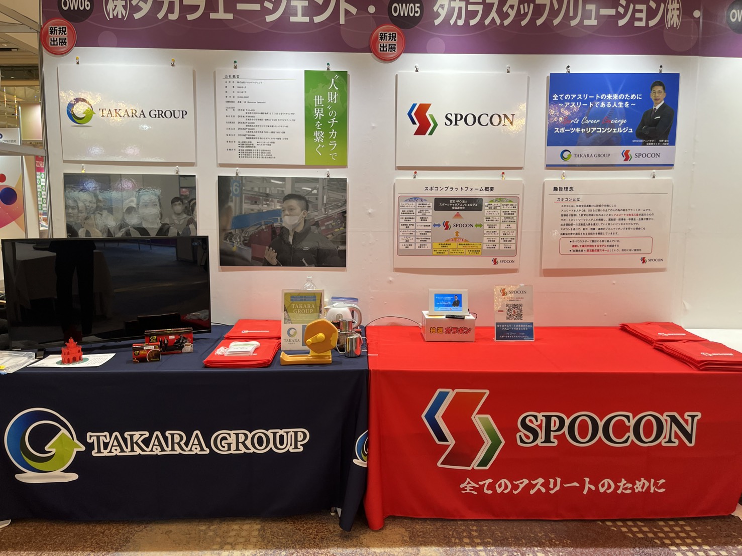 ●目的:AJD加盟社が集い出展者と半期の約定を取り交わす「展示商談会」に出展し、タカラエージェントの宣伝活動や、スポコンの紹介(仮登録して頂く)を行い人手不足でお困りの企業サポートを行うこと。