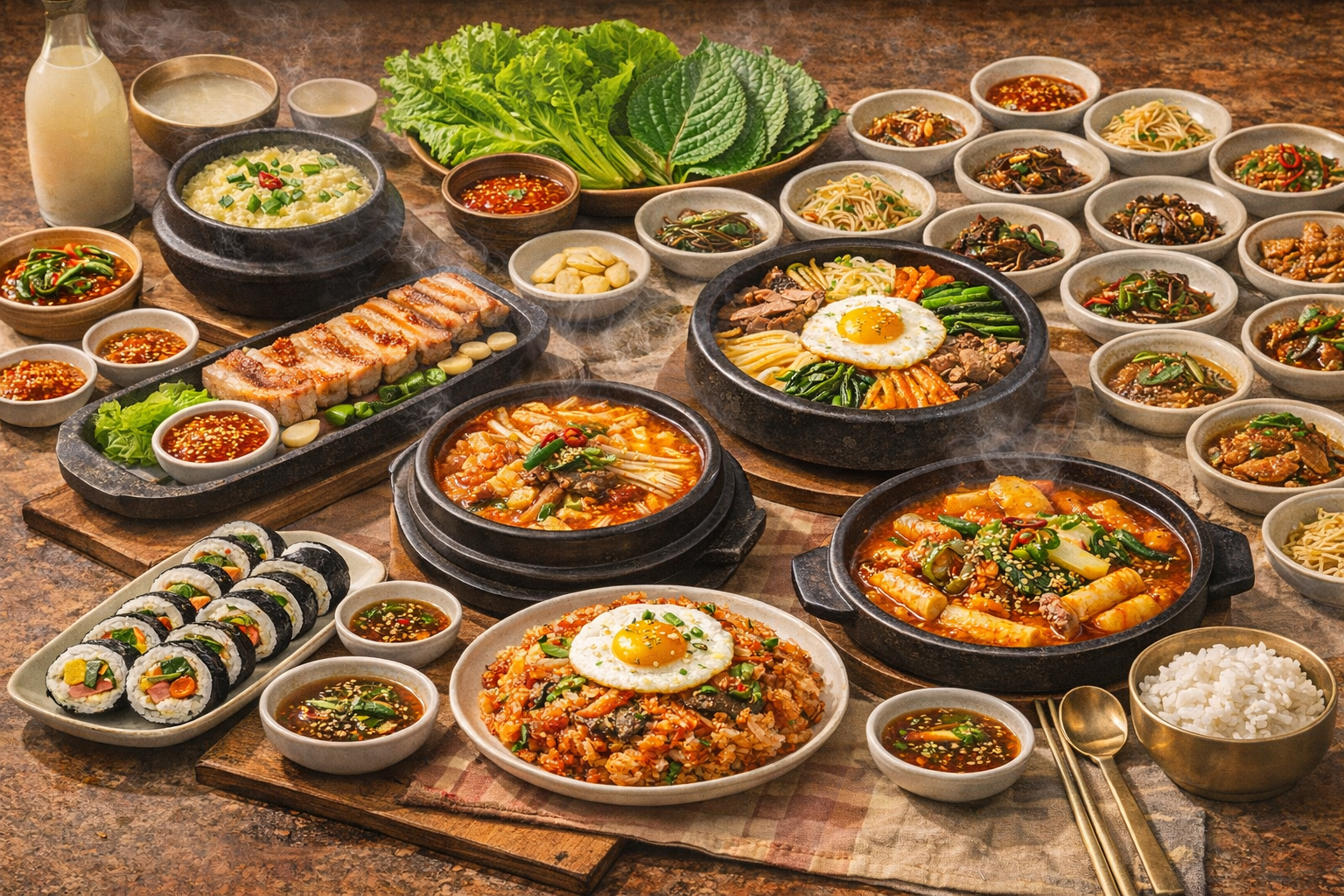 年長者を大切にする食卓の作法や、発酵食品を中心とした健康的な食事、そして「包む・混ぜる・熱々で食べる」といったスタイルは、韓国ならではの美味しさを生み出しています。