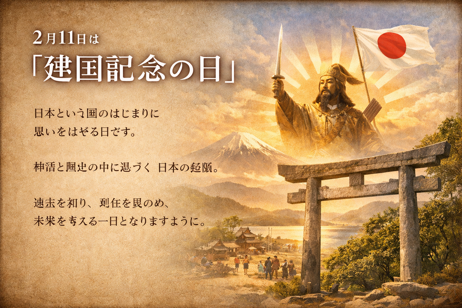 2月11日の「建国記念の日」は、日本という国のはじまりに思いをはせる日です。